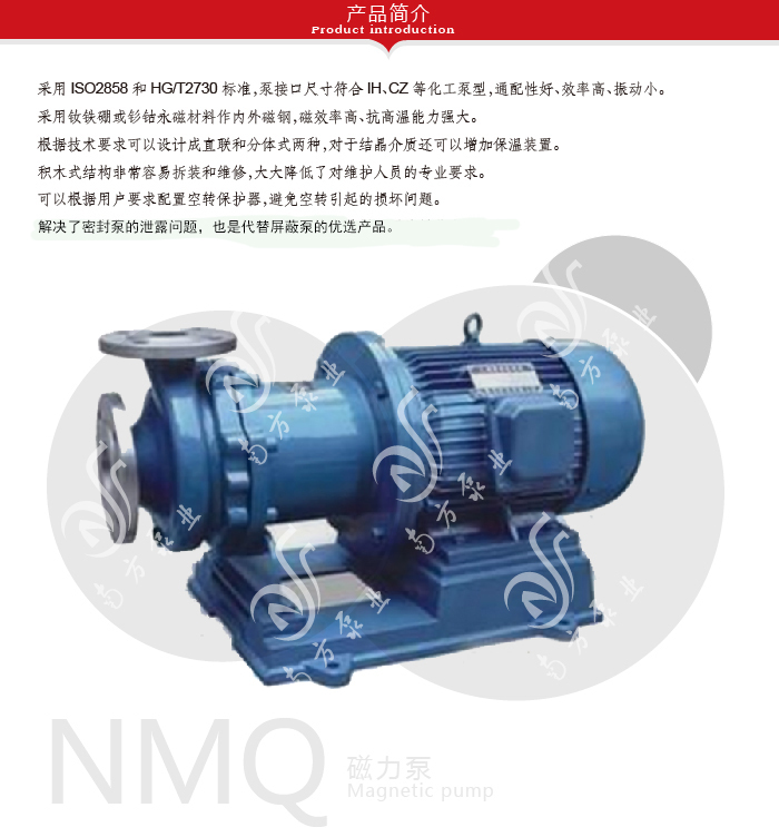 產(chǎn)品型號(hào):NMQ不銹鋼磁力泵主要特點(diǎn):