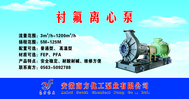 安徽南方化工泵業(yè)有限公司屆時將亮相在展會B區(qū)T7展位。歡迎新老客戶蒞臨展位參觀指導(dǎo)、業(yè)務(wù)洽談,歡迎各大媒體前來采訪報道。此次展會安徽南方化工泵業(yè)將展出多種新型化工耐腐蝕泵,包括:襯氟離心泵、無泄漏襯氟磁力泵、無泄漏金屬磁力泵等等。