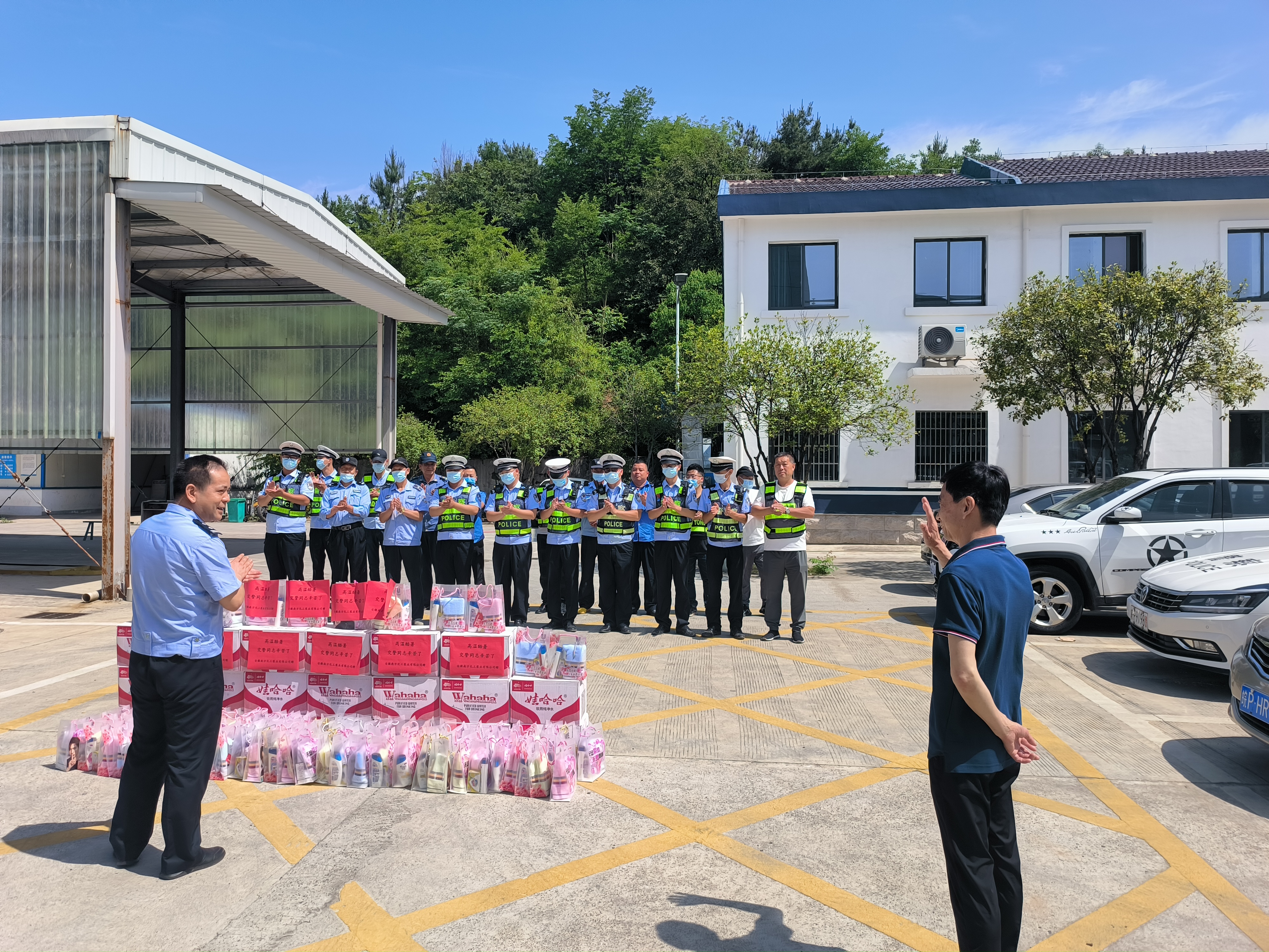 慰問中,潘耀東董事長(zhǎng)表示最近一直高溫不減火辣辣的太陽特別的毒辣看到站在太陽底下交警們汗水浸濕了衣服舊堅(jiān)守在崗,心里特別感動(dòng)